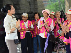 長者們雖然舟車勞頓身體些許疲倦,但一進到佛館,個個精神奕奕聽導覽。高齡86歲的陳曾守奶奶一路上笑臉盈盈,左看看、右盼盼,也跟著佛光小姐熱情的帶動唱手舞足蹈,她說:「有機會出來佛館走走,很快樂、很歡喜,佛館環境很清幽,住在這裡可以『呷百二』(台語),每一個地方都很清爽。」