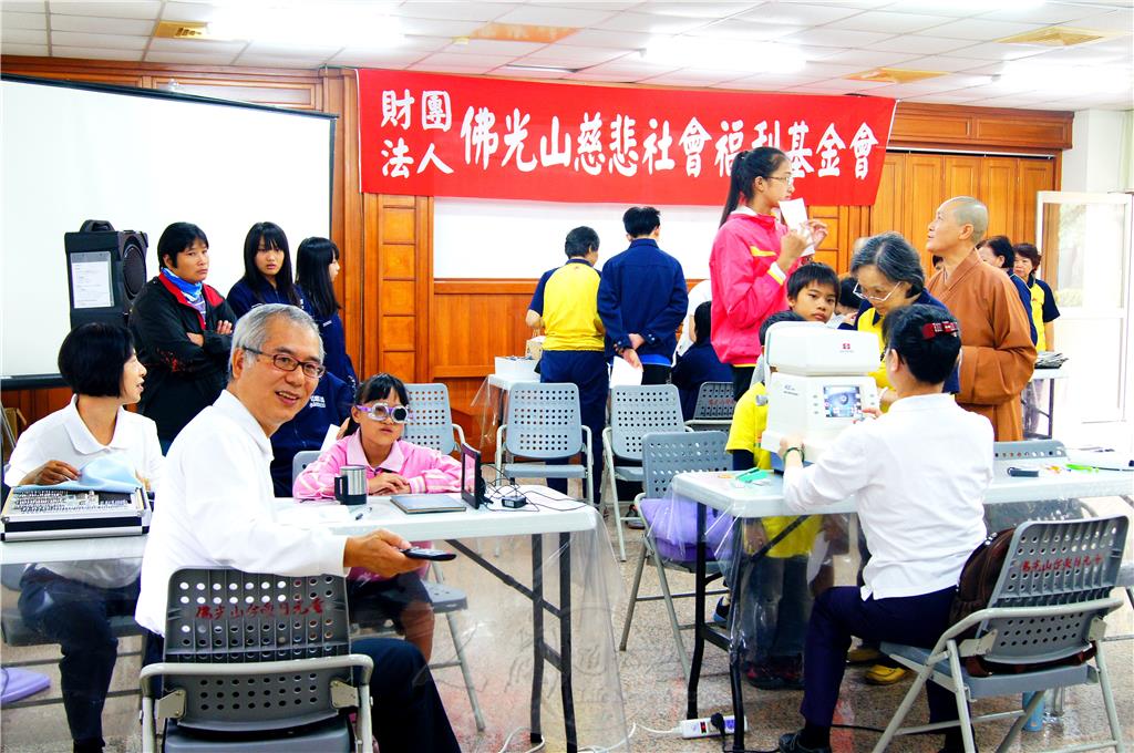 為照顧花東偏遠地區弱勢家庭孩童,台東縣政府、佛光山日光寺及財團法人佛光山慈悲社會福利基金會,10月14、15兩天聯手舉辦「有愛有鏡.看見未來」配鏡助學活動,為弱勢孩童免費檢查視力、驗光配鏡,有逾百位學童受益。