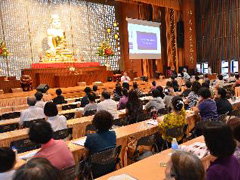 適逢九月重陽節敬老節,佛光山南台別院特於二樓大殿舉辦重陽敬老活動,住持妙勤法師特別發起佛光人廣邀長者與會。活動由佛光山慈悲基金會與國際佛光會台南第五督導區各分會協辦,活動中邀請佛光山慈悲基金會護智中心主任楊淵韓醫生講座,針對AD8極早失智症篩檢量表之教學,配合影片及AD8極早失智症篩檢量表,讓與會人士知道如何篩檢,是否有失智症的徵兆,吸引近500位民眾參與。