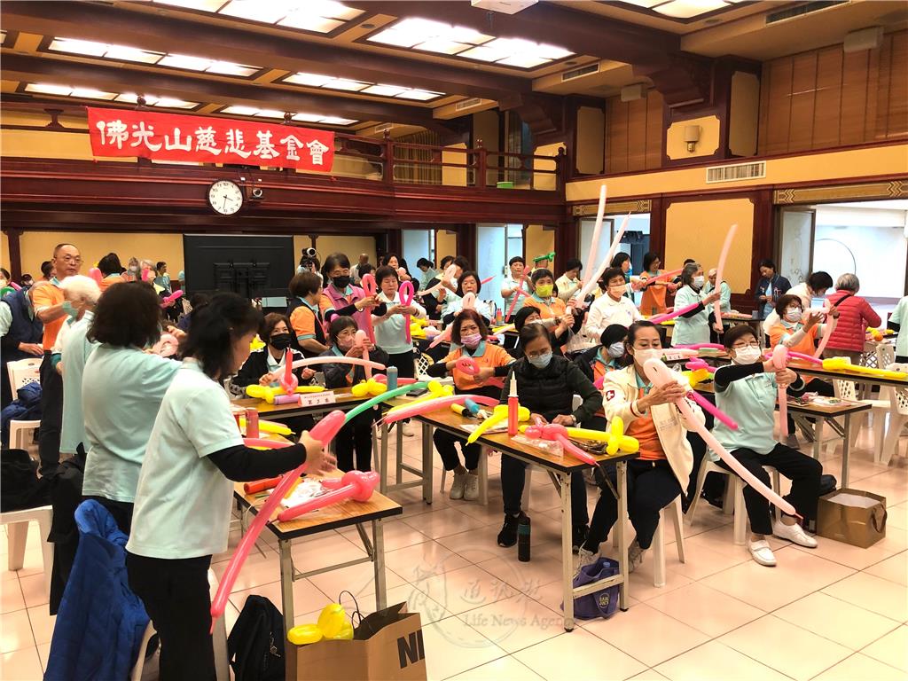 圖說:義工們專注學習創意氣球製作。 人間社記者柳永順攝